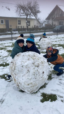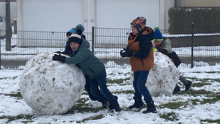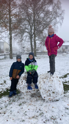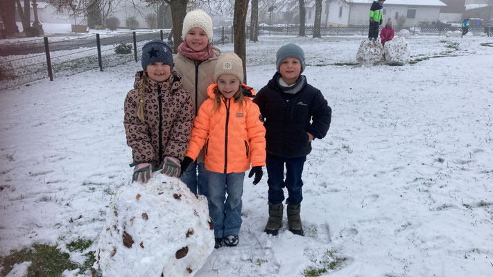 Am Montag, den 24.11.2025, freuten sich unsere Kinder über den ersten Schnee. In der Pause entstanden schnell viele Riesenkugeln!