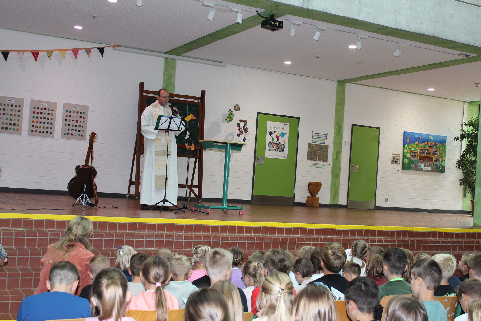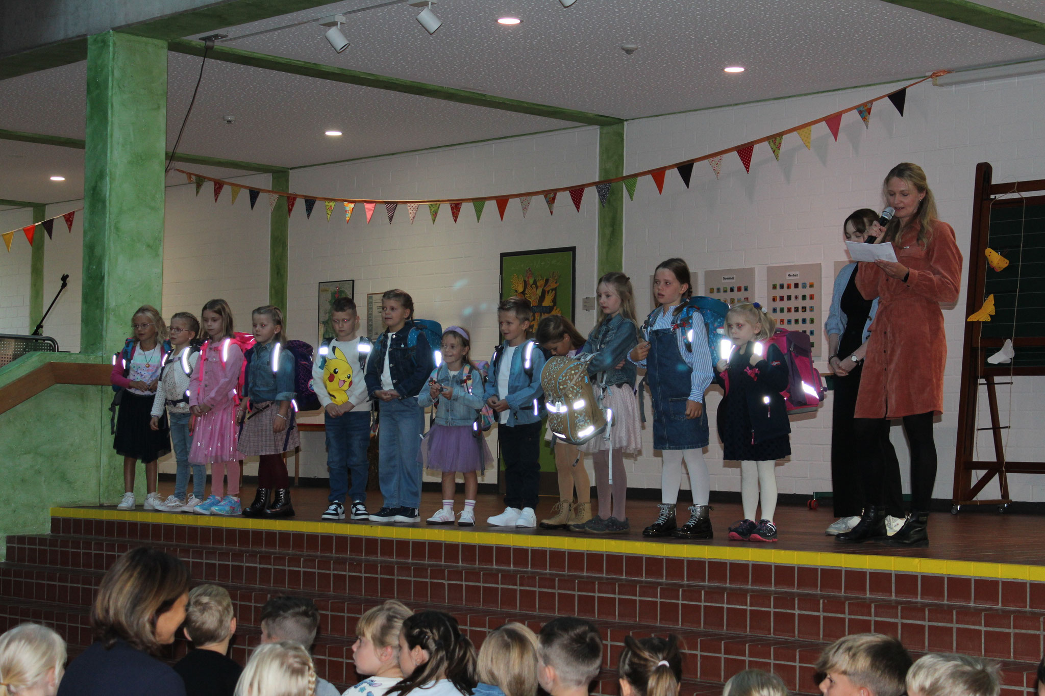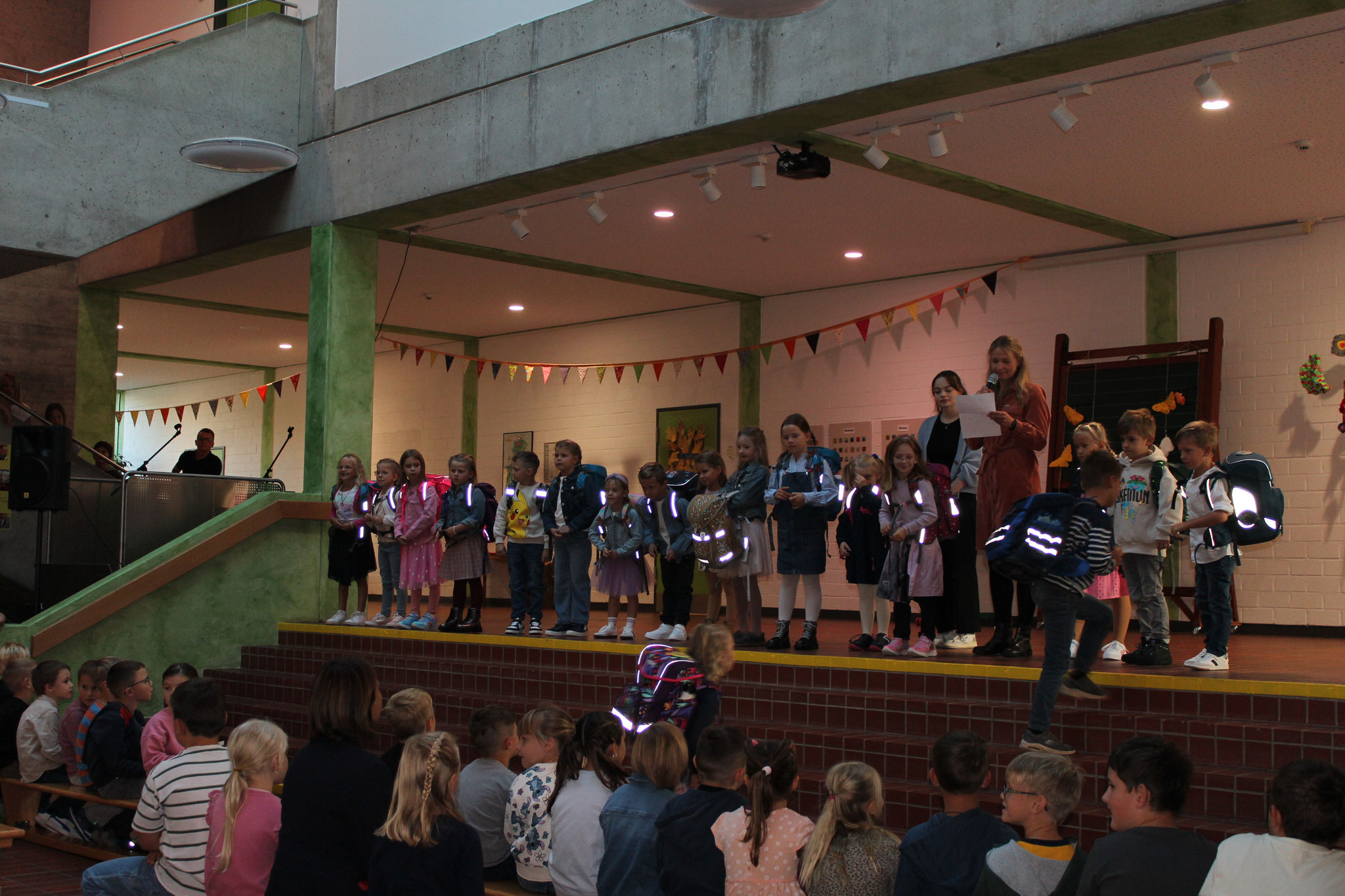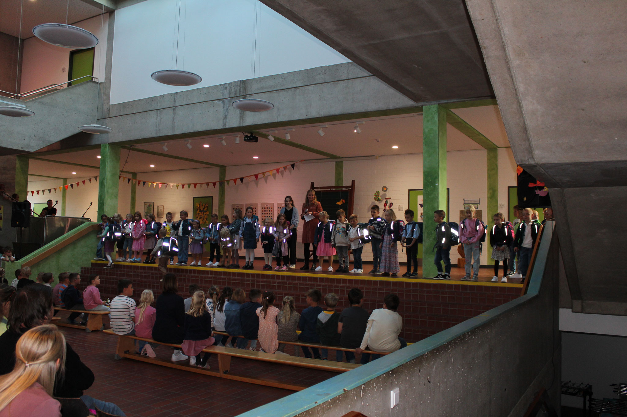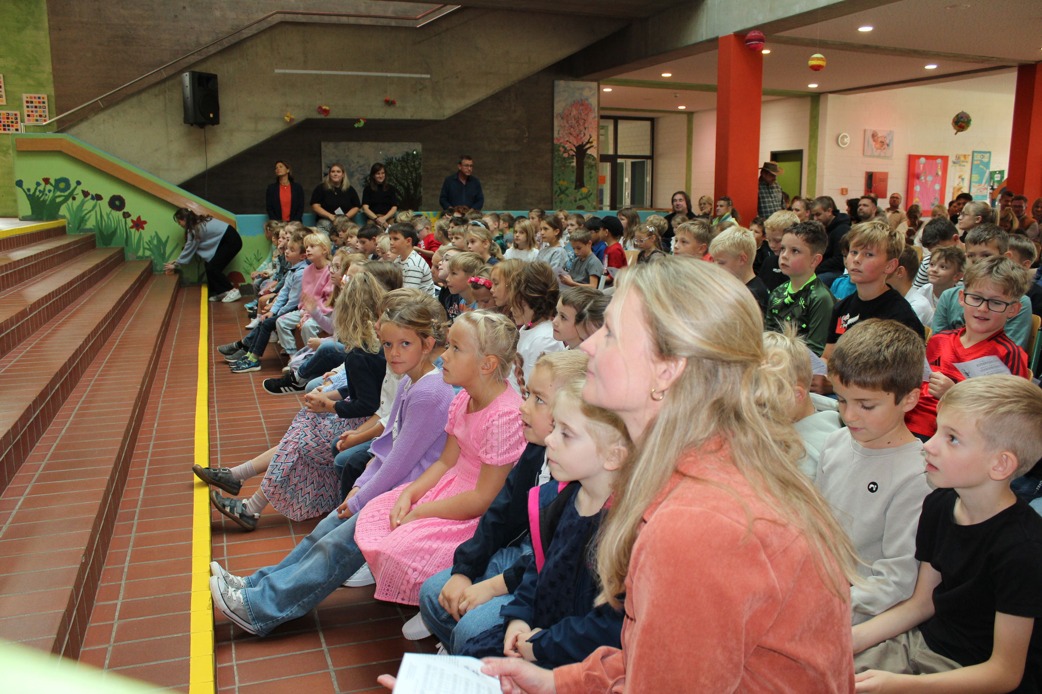 Am Dienstag fand die Einschulungsfeier für unsere neuen Erstklässler statt. Insgesamt wurden 26 Kinder, darunter 17 Mädchen und 9 Jungen, feierlich an unserer Schule begrüßt. Kinder und Eltern wurden durch unseren Schulleiter sowie mit einem Einschulungsrap der Klasse 3b und einem Gedicht der Zweitklässler empfangen. Nach dem Empfang ging es für die Erstklässler gemeinsam mit ihrer Klassenlehrerin Evelyn Schirmer und der Lehramtsanwärterin Louisa Kori-Lindner das erste Mal ins Klassenzimmer. In einer kurzen Unterrichtsstunde lernten sie ihre neue Umgebung und ihre Mitschülerinnen und Mitschüler kennen.