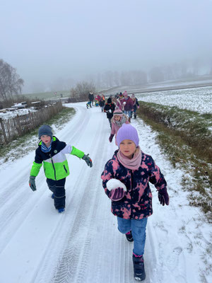 Die Bewegung an der frischen Luft und das gemeinsame Erleben bereiteten allen große Freude. Am Ende kehrten die Kinder fröhlich und mit roten Wangen zurück.